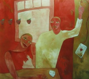 Featured artwork: “Cards on the Table #2” – painting by Mary Corbin.