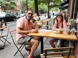 After the visual feast and then some, we walked through Greenwich Village and the West Village and landed at an outdoor cafe with Italian food to wait for Charles, an old friend from Berkeley who moved to New York in 2000 to work as a photographer. A resident of the nearby Chelsea neighborhood, he walked over to meet us for a late lunch at Wild. We aimed to catch up on the past years as best we could before heading out on the road again while the bittersweet ticking of time oozed out of our hearts and souls. So good to see Charles, hear his wonderful voice, share stories, connect, however brief. Then, sadly, it was time to push on.