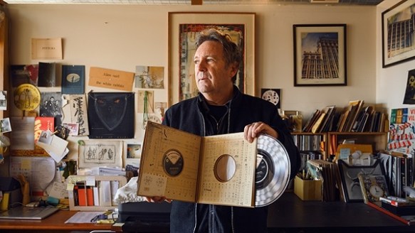If you like traveling the intersection where eclectic visual arts and music meet, it’s time to get to know a unique, small record label in Alameda. Time Released Sound and its sister label, Time Sensitive Materials, were founded in 2011 and 2015 respectively. From his Park Street studio in Alameda, artist Colin Herrick devotes his time to making handmade, limited edition released music with creative packaging. As a former printmaking student at California College of the Art, Herrick creates designs that mirror the art he has been making for over 30 years. Working in mixed media, he incorporates old school photographic media techniques via methods used in bookmaking, collage, and printmaking.